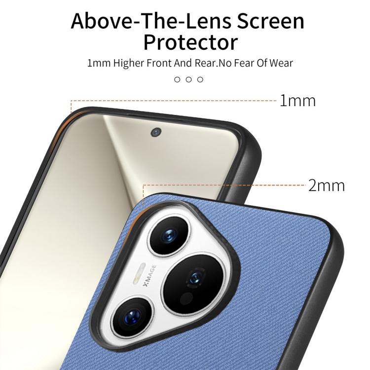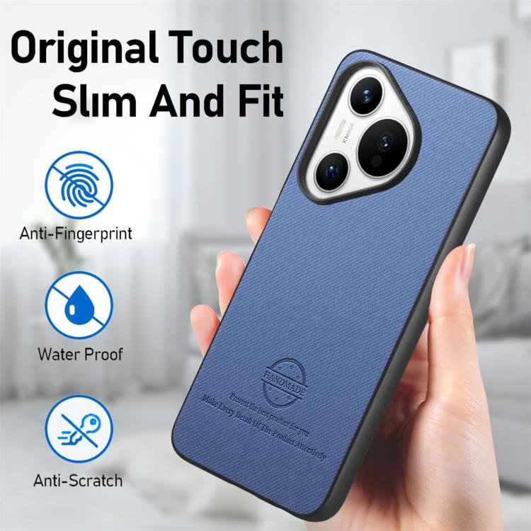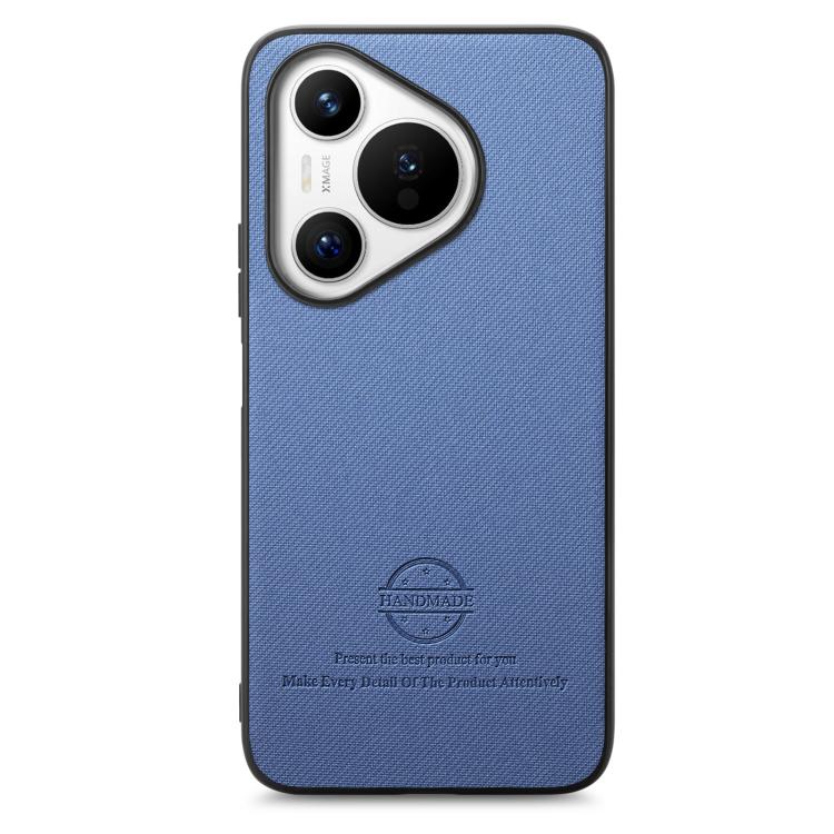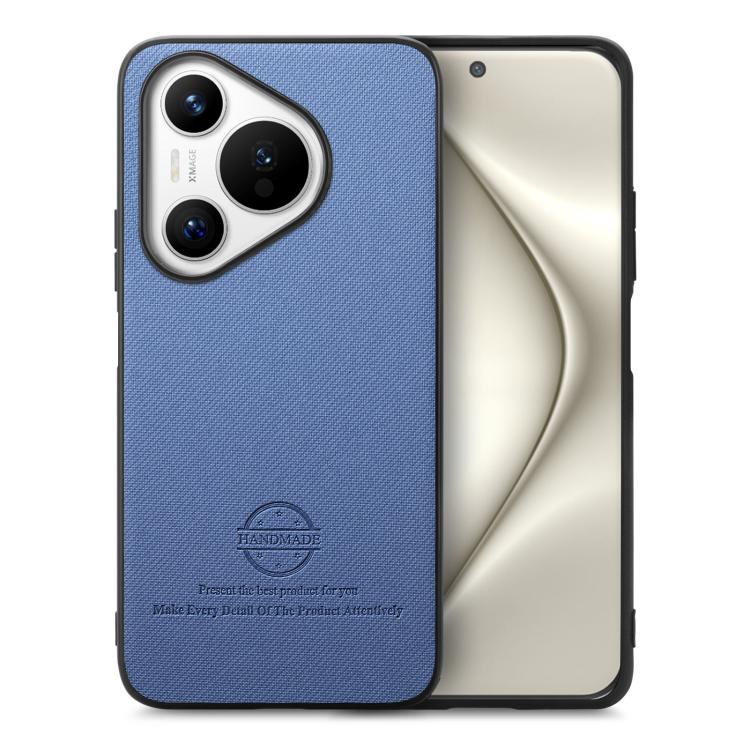 Funda Piel de Sarga con Parte Trasera de Cuero para Huawei Pura 70 Pro (Azul)