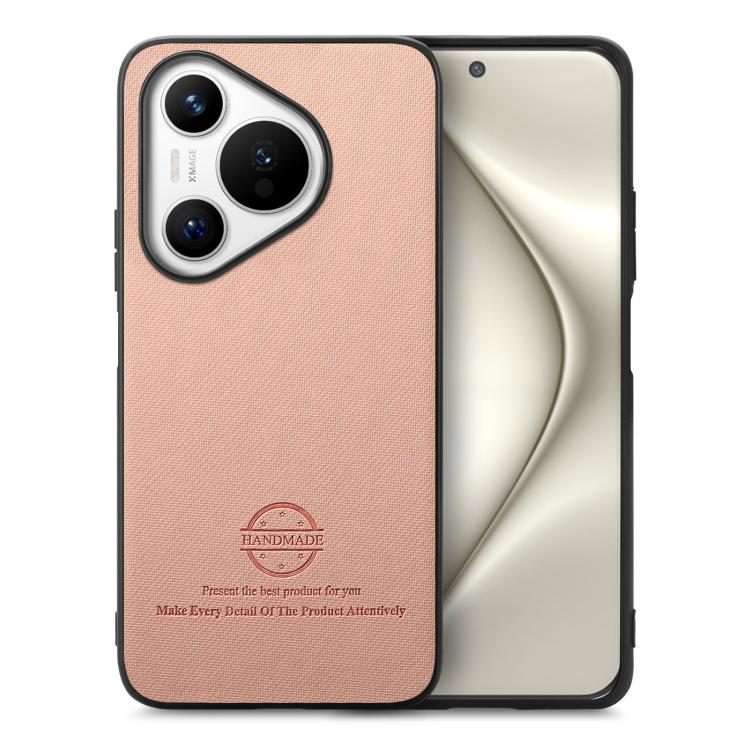 Funda de Piel de Sarga con Parte Trasera de Cuero para Huawei Pura 70 (Rosa)