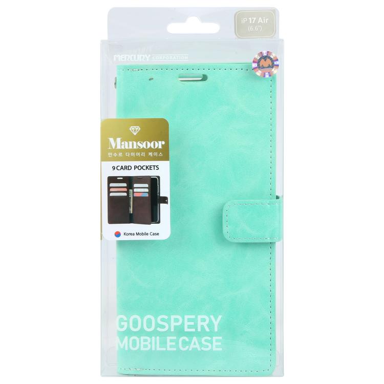Funda de piel para iPhone Air GOOSPERY MANSOOR DIARY con 9 ranuras para tarjetas (Verde menta)