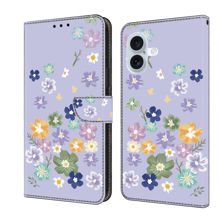Funda de Piel para iPhone 16 Pintada a Mano Floral (Morado)