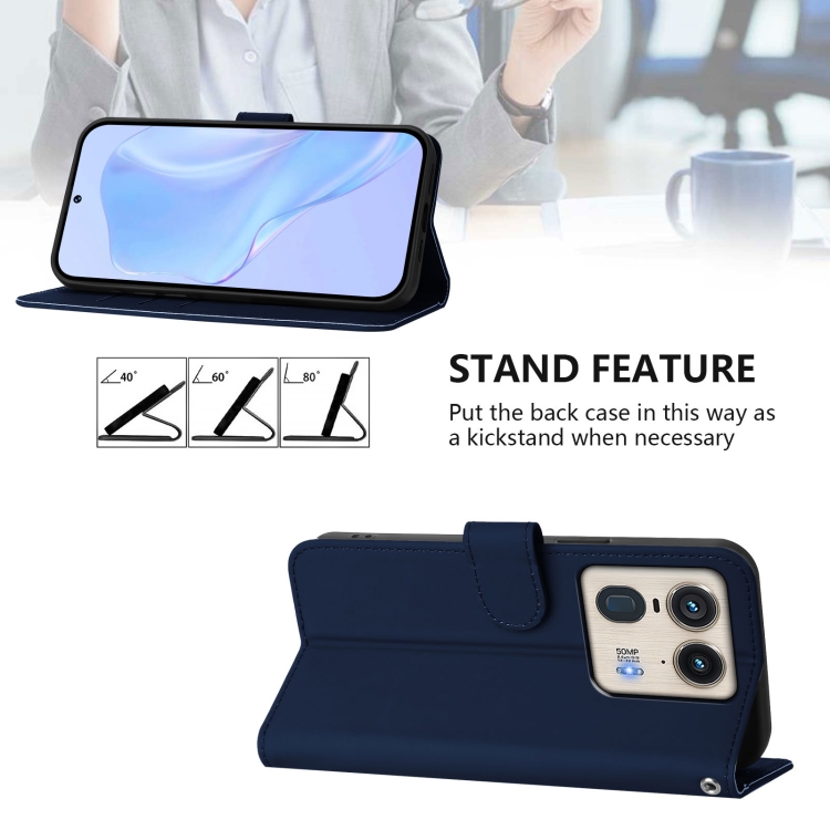 Funda de Piel Sintética con Cordón para Motorola Edge 50 Ultra/X50 Ultra (Azul Marino)