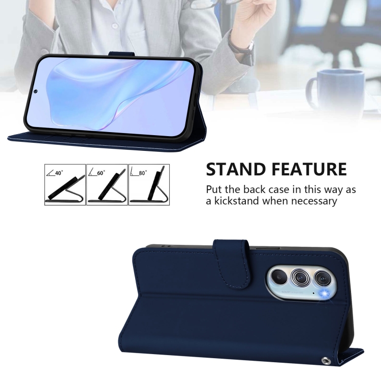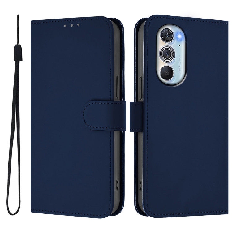 Funda de Piel Sintética con Cordón para Motorola Edge X30 5G y 30 Pro (Azul Marino)