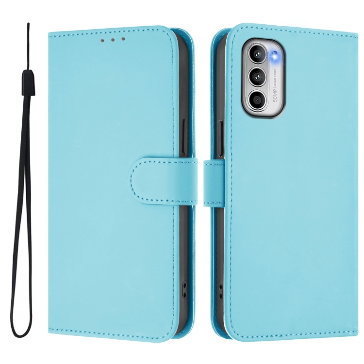 Funda de Piel Sintética con Cordón para Motorola Moto G 5G 2022 (Azul Cielo)