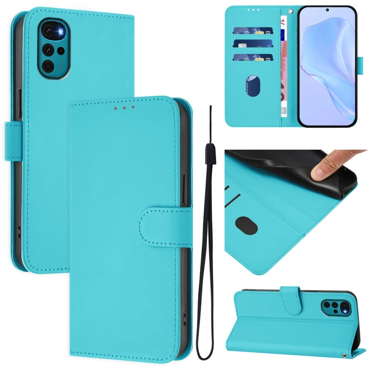 Funda de Piel Sintética con Cordón para Motorola Moto G22 4G y E32S (Azul Lago)
