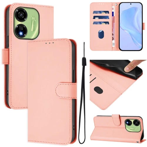 Funda de Piel Sintética con Cordón para Teléfono Itel P55 5G (Rosa)