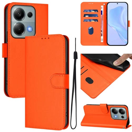 Funda de Piel Sintética con Cordón para Xiaomi Poco M6 Pro 4G (Naranja)
