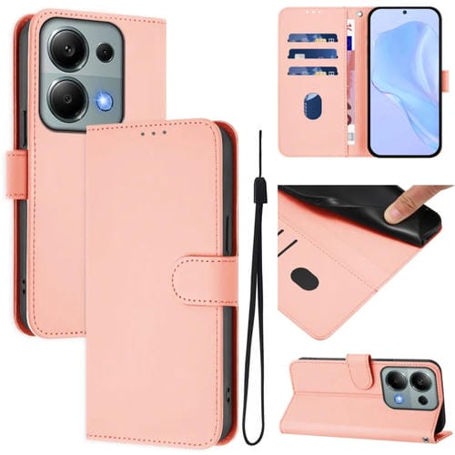 Funda de Piel Sintética con Cordón para Xiaomi Poco M6 Pro 4G (Rosa)