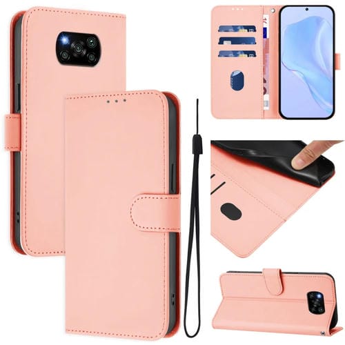 Funda de Piel Sintética con Cordón para Xiaomi Poco X3 Pro / X3 Nfc / X3 (Rosa)