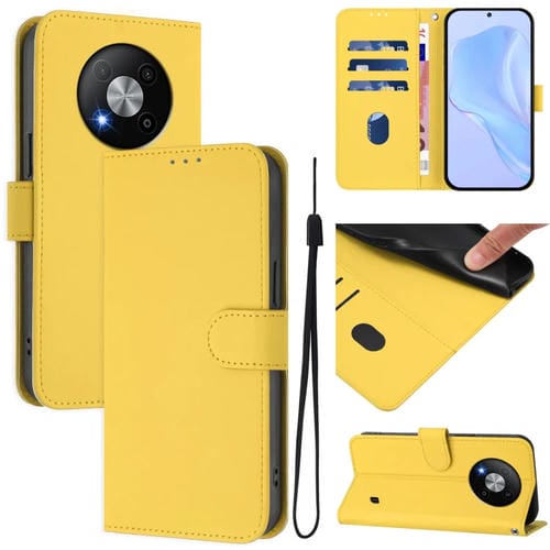 Funda de Piel Sintética con Cordón para ZTE Blade A73 5G (Amarillo Limón)