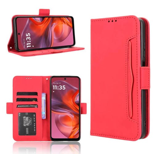 Funda de Piel Sintética con Textura de Becerro y Ranuras para Tarjetas para Motorola Moto G05 4G / E15 4G (Roja)