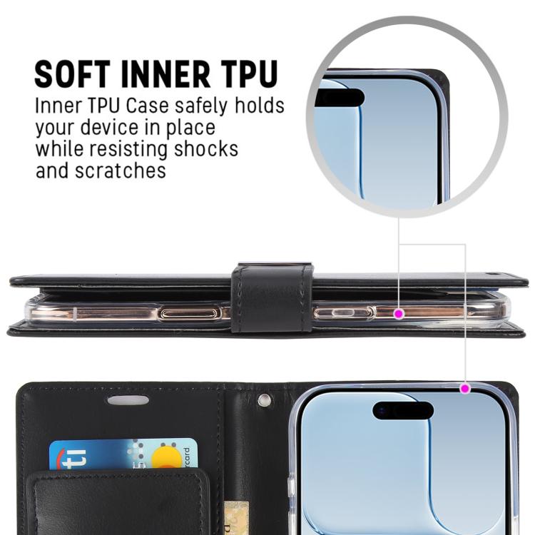 Funda de piel texturizada Crazy Horse para iPhone Air GOOSPERY RICH DIARY (Negra)