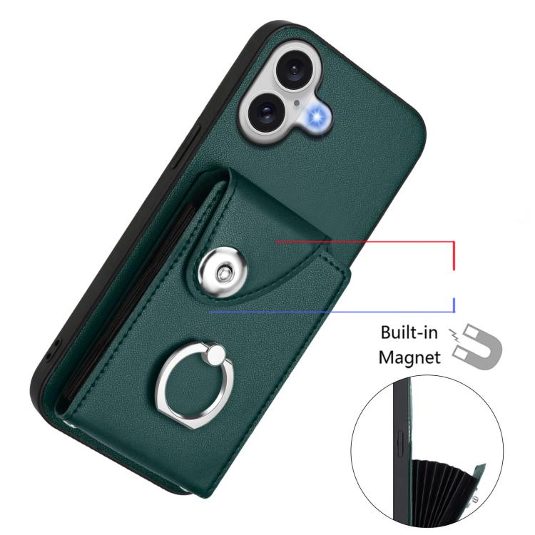 Funda de PU con cordón para iPhone 17, con tarjetero, anillo y soporte (verde)