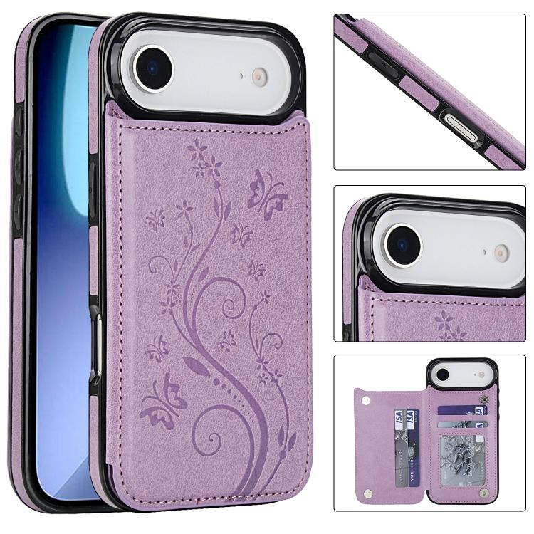 Funda de PU con doble hebilla y estampado de mariposa para iPhone Air (morada)