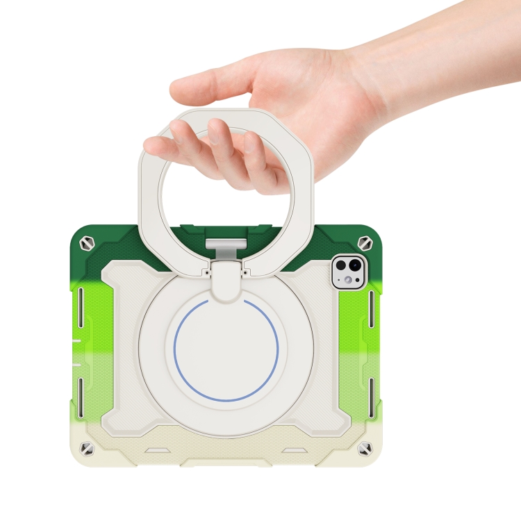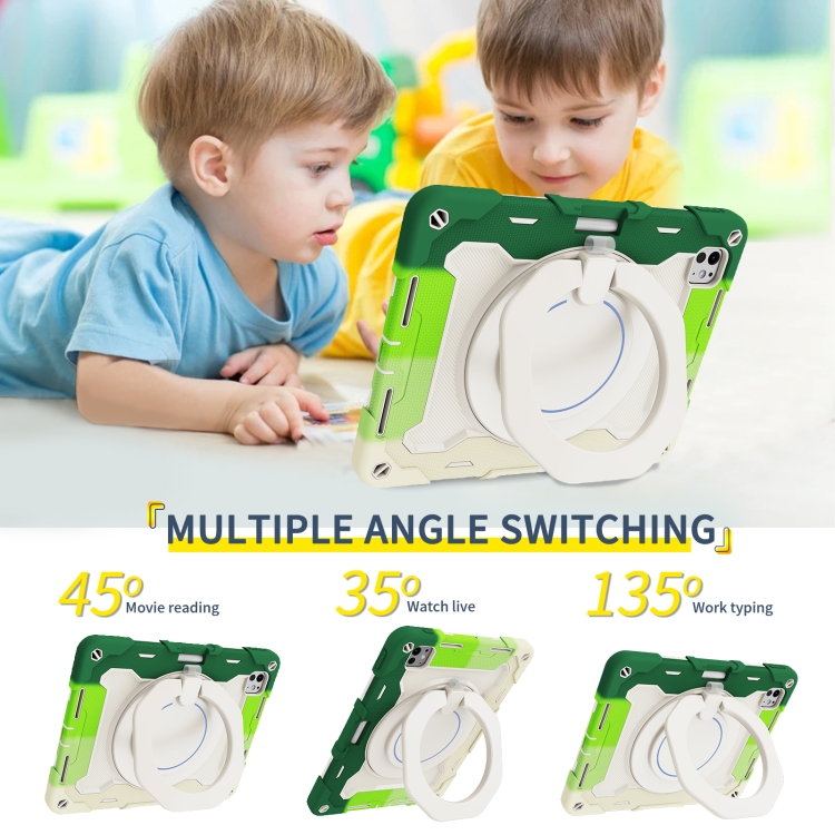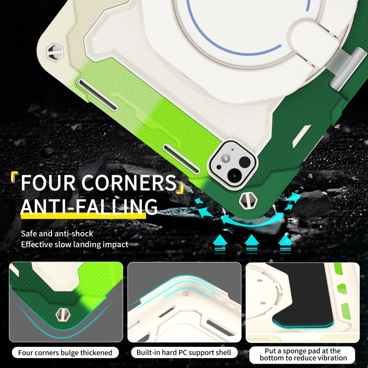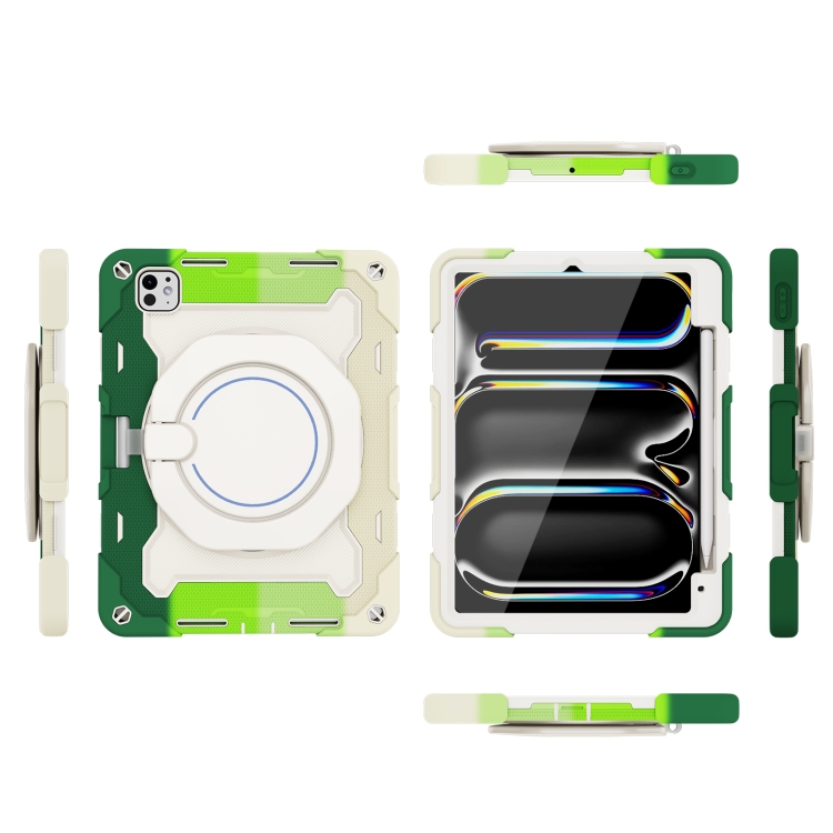 Funda de Silicona para iPad Pro 11 (2024) con Anillo Giratorio y Ranura para Bolígrafo (Verde)