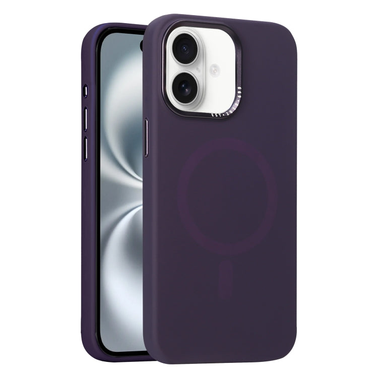 Funda de Silicona Líquida con Marco de Lente de Metal Magsafe para iPhone 16 (Morado Oscuro)