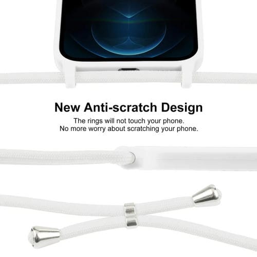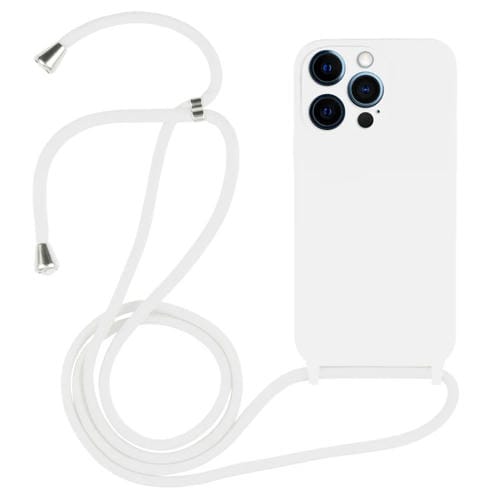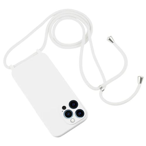 Funda de silicona líquida para iPhone 12 Pro Max crossbody lanyard (Blanco)