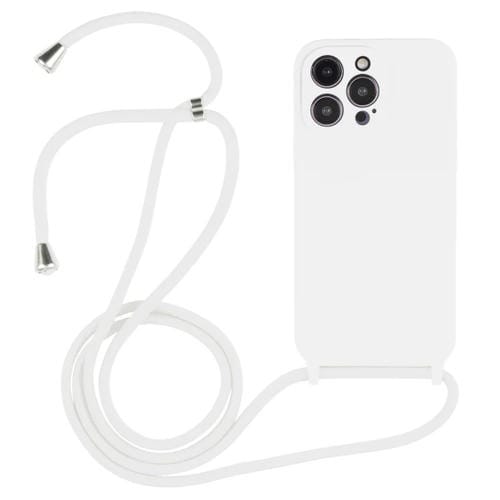 Liquid Silicone Case for iPhone 15 Pro Max Crossbody Lanyard (White)