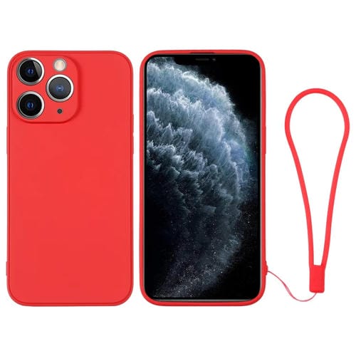 iPhone 11 Pro Silicone Phone Case with Wrist Strap (Red)
