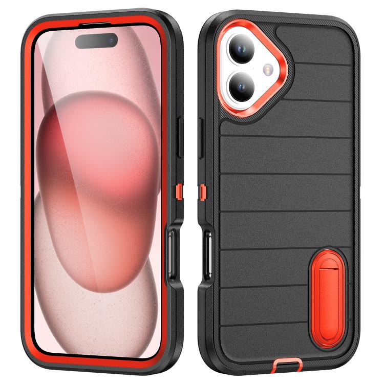 Funda de Silicona y PC Resistente con Soporte para iPhone 16 Defender Gen2 (Negro y Naranja)