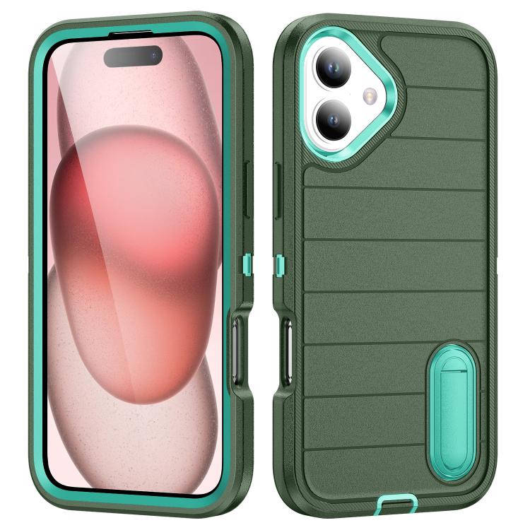Funda de Silicona y PC Resistente con Soporte para iPhone 16 Defender Gen2 (Verde Oscuro y Cian)