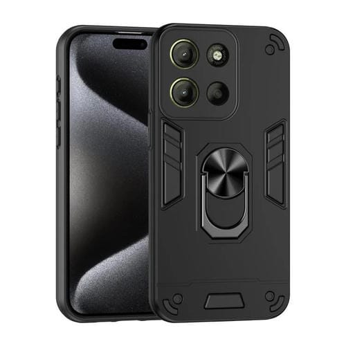 Funda de Teléfono Motorola Moto G15 con Soporte de Anillo Metal y Protección Antigolpes (Negro)