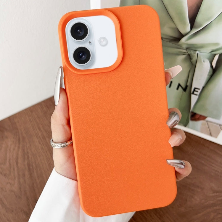 Funda de Teléfono TPU con Textura de Cuero Cobertura Total para iPhone 16 (Naranja)