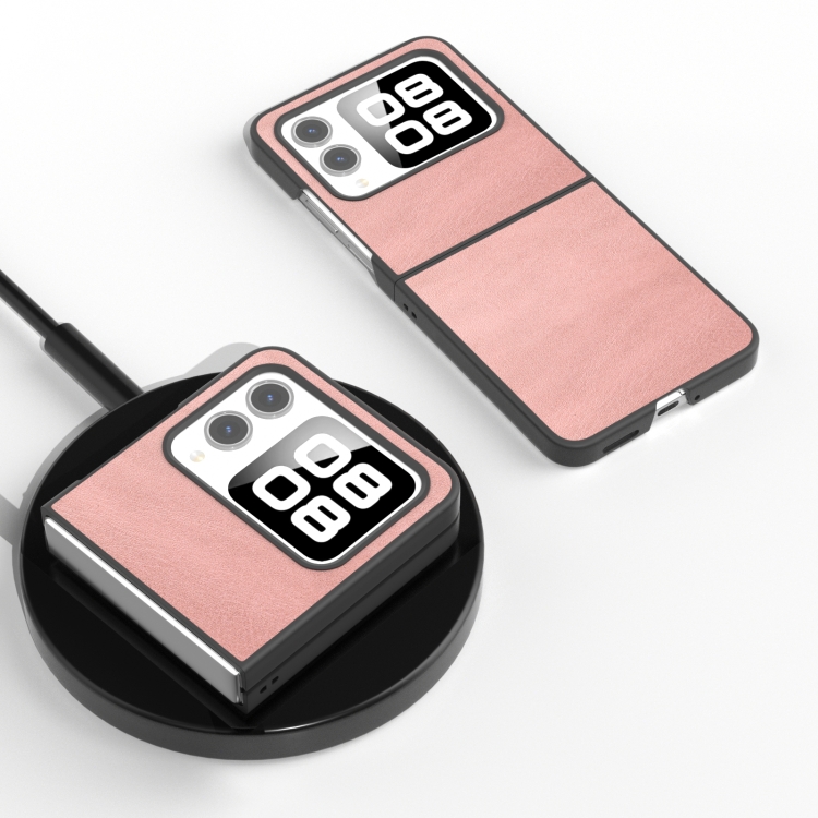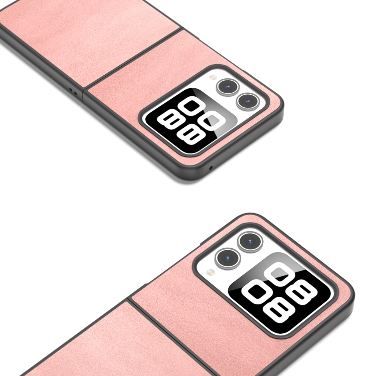 Funda de Teléfono Huawei Nova Flip con Textura Piel Becerro Dos Colores y Marco Negro (Oro Rosa)