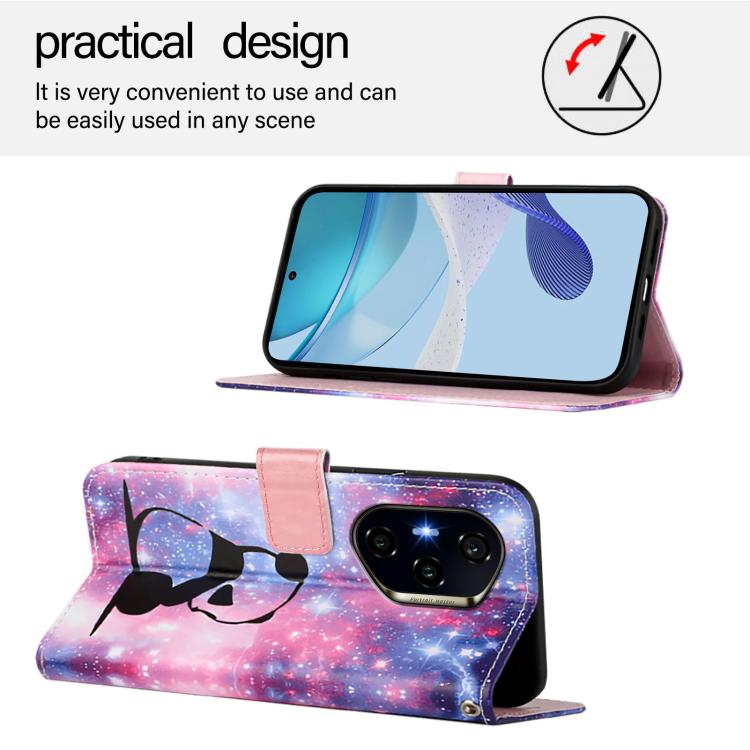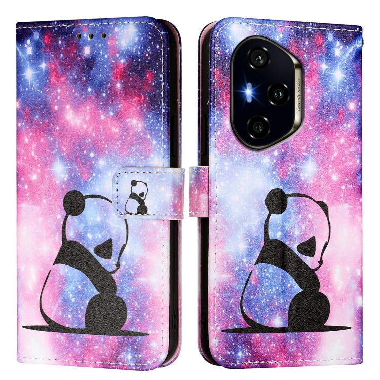 Funda de Cuero para Honor 300 Pro/300 Ultra con Tejido Liso y Estampado Panda Bebé