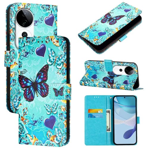 Funda de Teléfono de Cuero con Tejido Liso y Patrón de Dibujo de Colores para Vivo S19 Pro (Mariposa de Amor)
