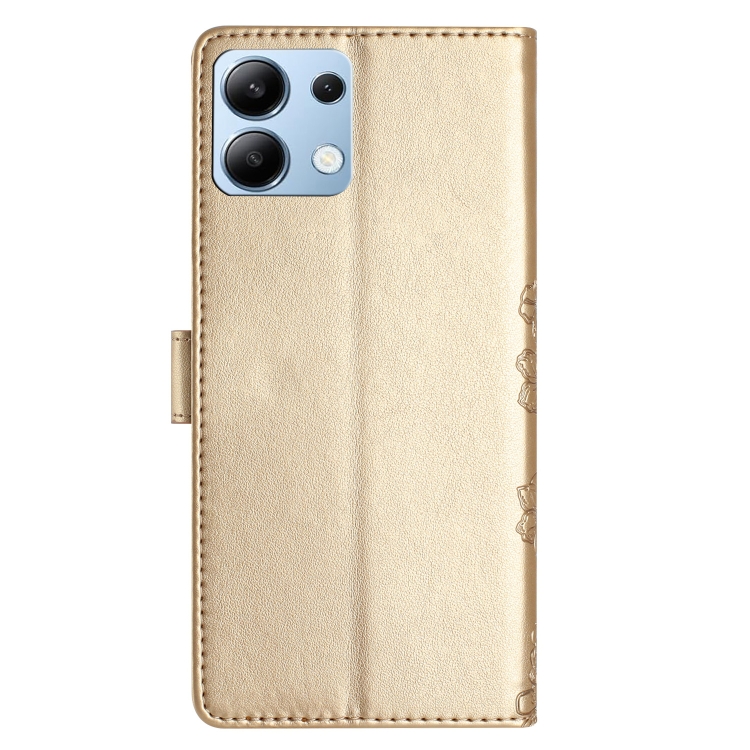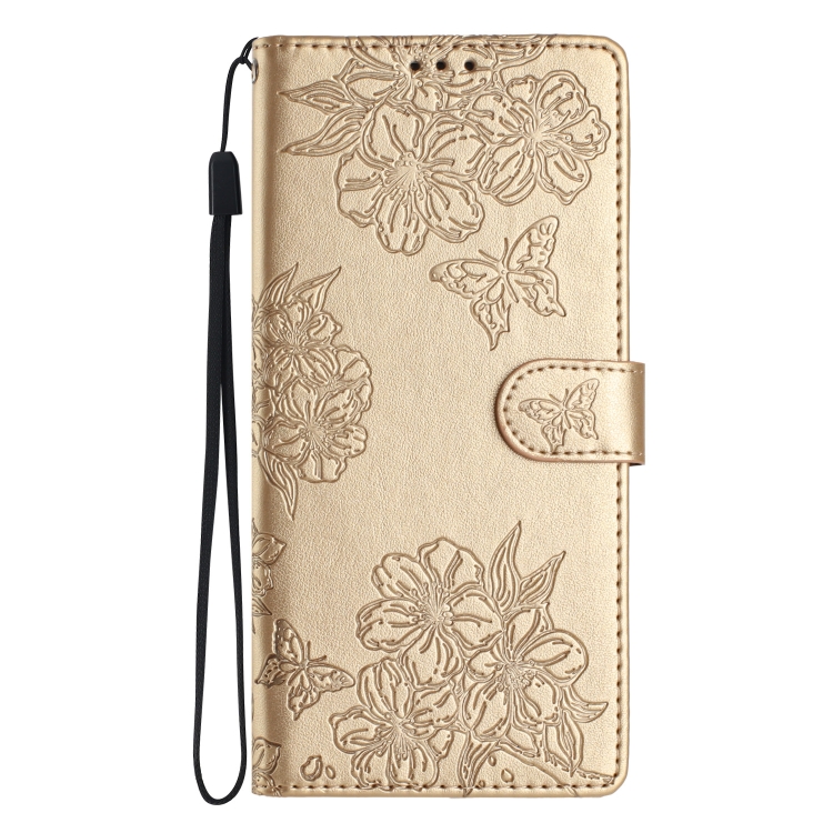 Funda de Teléfono de Pu con Relieve de Piel de Mariposa y Diseño de Flor de Cerezo para Redmi Note 13 4G (Dorada)