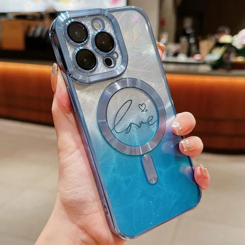 Funda de Teléfono TPU Purpurina Degradado Plumas Amor para iPhone 13 Pro (Azul)