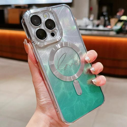 Funda teléfono TPU Purpurina degradado plumas amor iPhone 13 Pro (Verde)