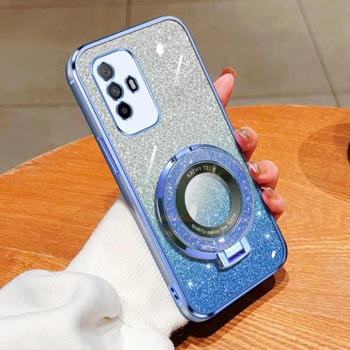 Funda de Teléfono de TPU con Soporte Redondo y Purpurina Degradada para Oppo A95 4G (Azul Sierra)