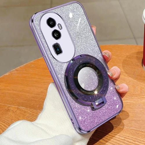 Funda de Teléfono de TPU con Soporte Redondo y Purpurina Degradada para Oppo Reno10 Pro+ (Morado)