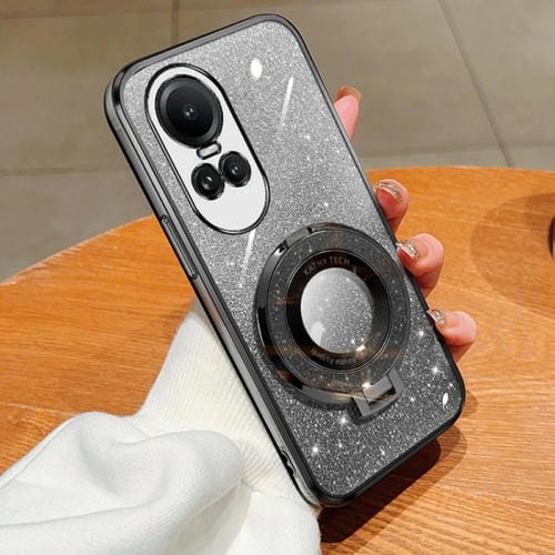 Funda de Teléfono de TPU con Soporte Redondo y Purpurina Degradada para Oppo Reno10 Pro (Negra)