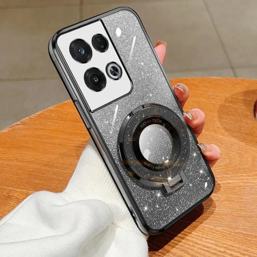 Funda de Teléfono de TPU con Soporte Redondo y Purpurina Degradada para Oppo Reno8 Pro (Negra)
