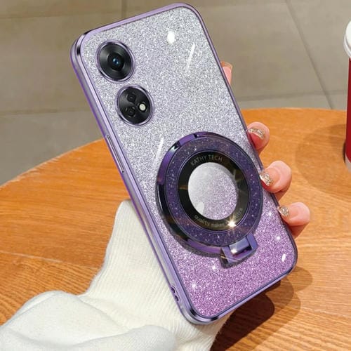 Funda de Teléfono de TPU con Soporte Redondo y Purpurina Degradada para Oppo Reno8 T 4G (Morado)