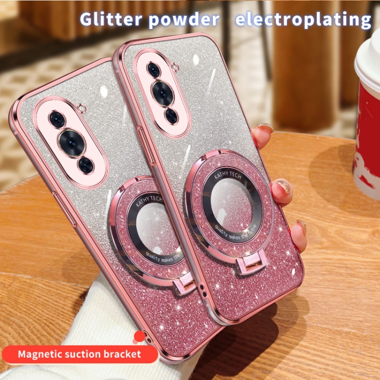 Funda TPU con Soporte Redondo y Purpurina Degradada para Huawei Nova 10 Pro (Negra)