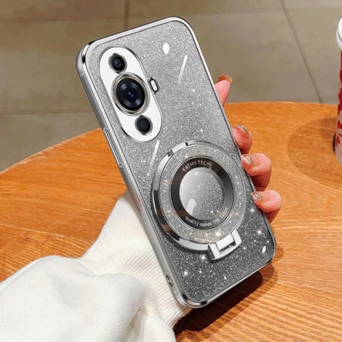 • 1x Funda TPU con Soporte Redondo y Purpurina Degradada para Huawei Nova 11 Pro (Plateada)