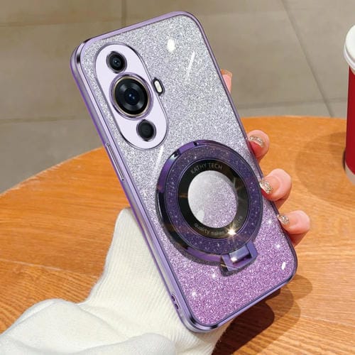 Funda de TPU con Soporte Redondo y Purpurina Degradada para Huawei Nova 11 Pro (Púrpura)