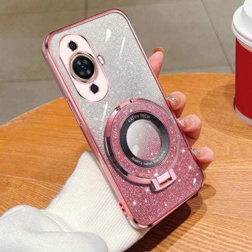 Funda de TPU con Soporte Redondo y Purpurina Degradada para Huawei Nova 11 (Rosa)