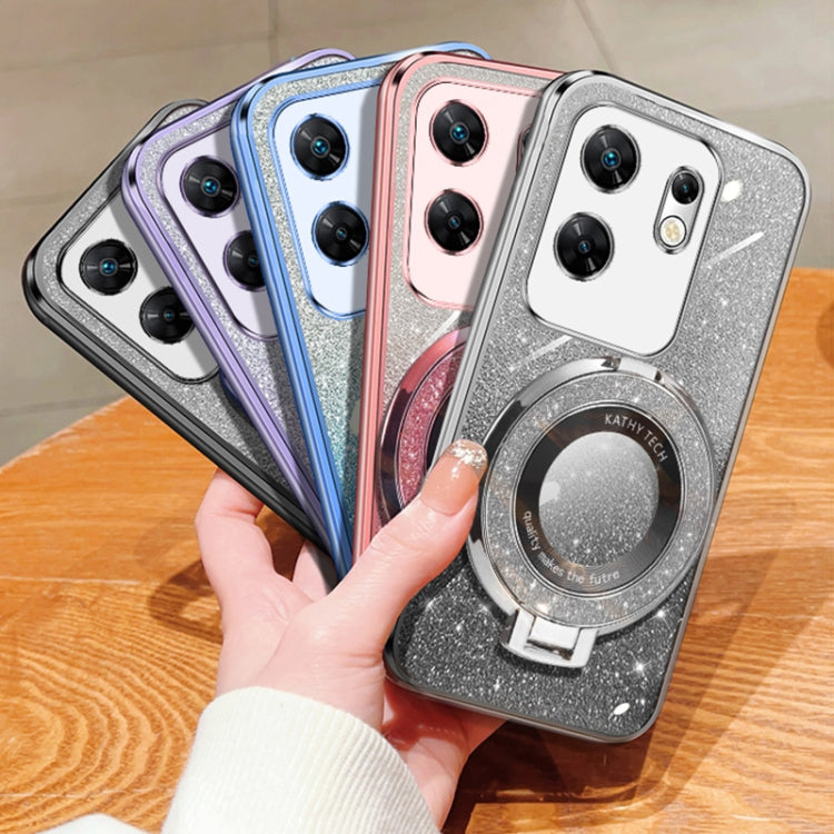 Funda TPU con Soporte Redondo y Purpurina Degradada para Infinix Zero 30 4G (Plateada)