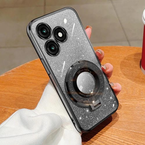 Funda de TPU con Soporte Redondo y Purpurina Degradada para Itel A70 (Negra)