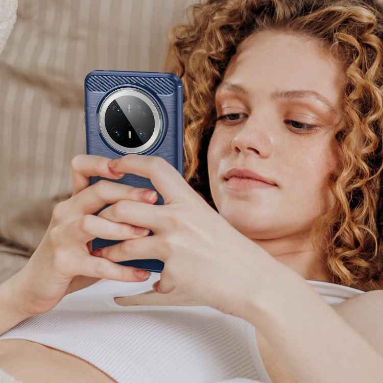 Funda TPU con Textura Cepillada Fibra de Carbono para Huawei Mate 70 Pro / 70 Pro+ (Azul)