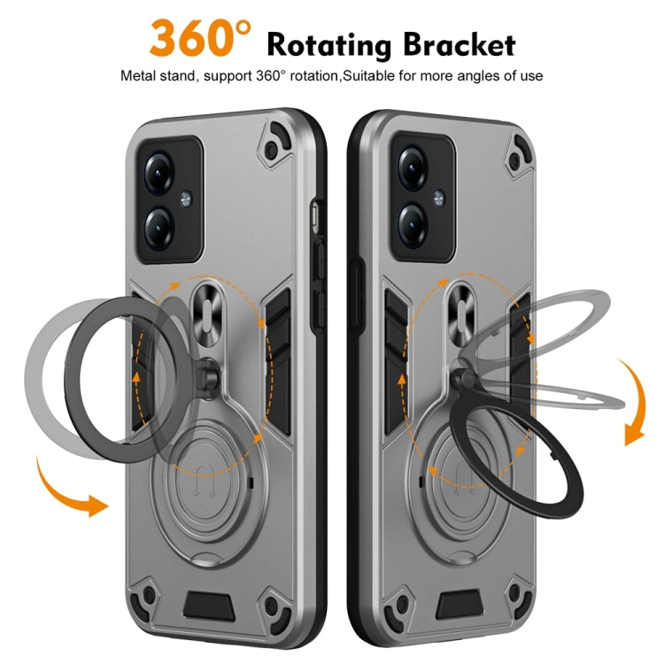 Funda Híbrida TPU y PC con Soporte Giratorio 360° y Anillo Metal para Motorola Moto G14 (Gris Plateado)
