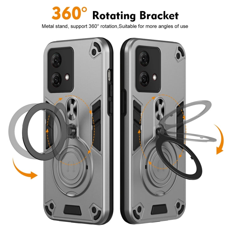 Funda híbrida TPU y PC con soporte giratorio 360° y anillo metal para Motorola Moto G84 (Gris Plateado)