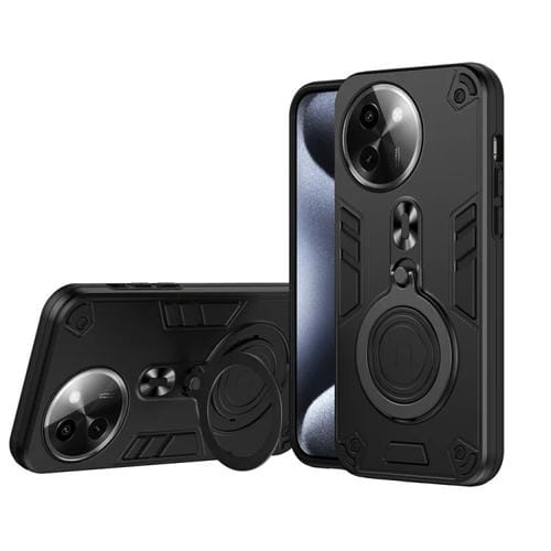 Funda de Teléfono Híbrida de TPU y PC con Soporte Giratorio de 360 Grados y Anillo de Metal para Vivo Y200I (Negro)