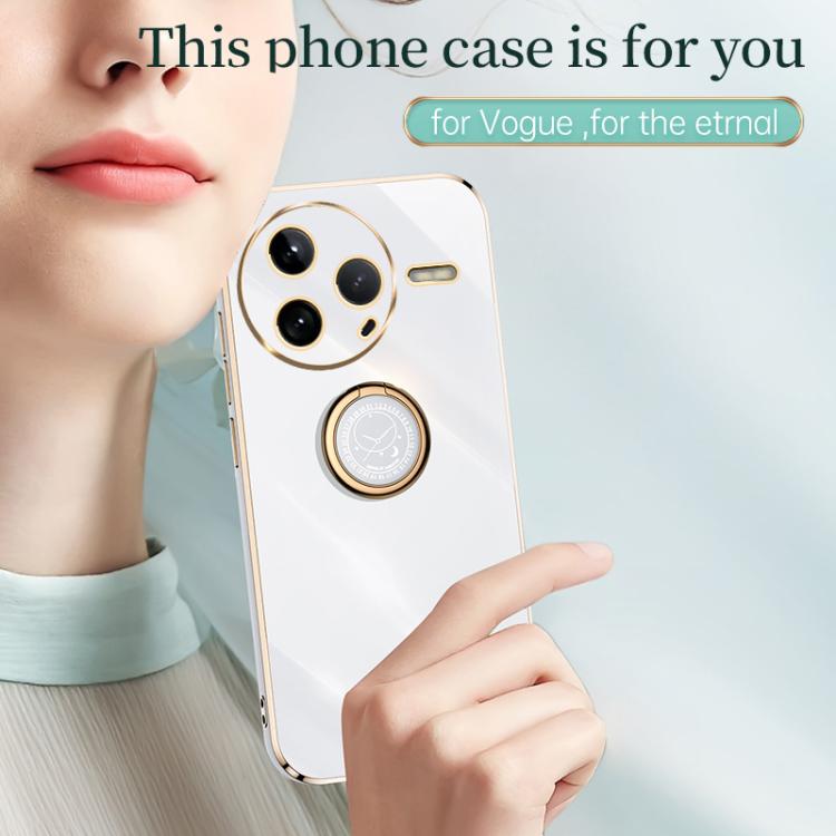 Funda de TPU con Borde Recto 6D Galvanizado y Soporte para Anillo para Redmi K80 Xinli (Rojo Espino)