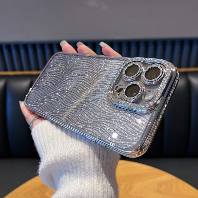 Funda TPU con Purpurina y Degradado Ondas de Agua y Diamantes para iPhone 16 Pro (Plateada)