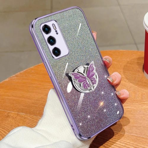 - 1x Funda TPU con Soporte Mariposa y purpurina degradada para Huawei P40 (Morado)